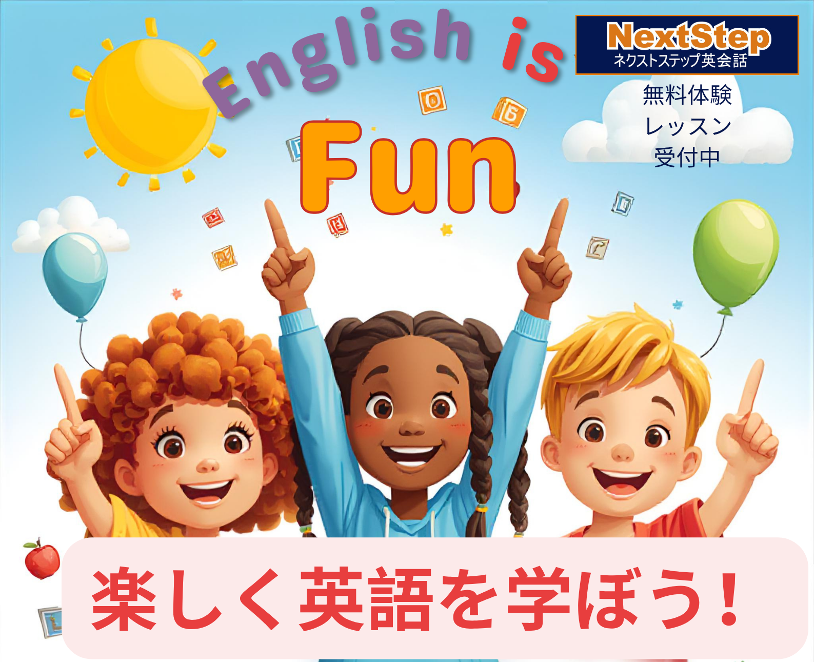 NextStepは、あなたに合わせた英語学習方法で、楽しく、実用的に、しっかりサポートします。